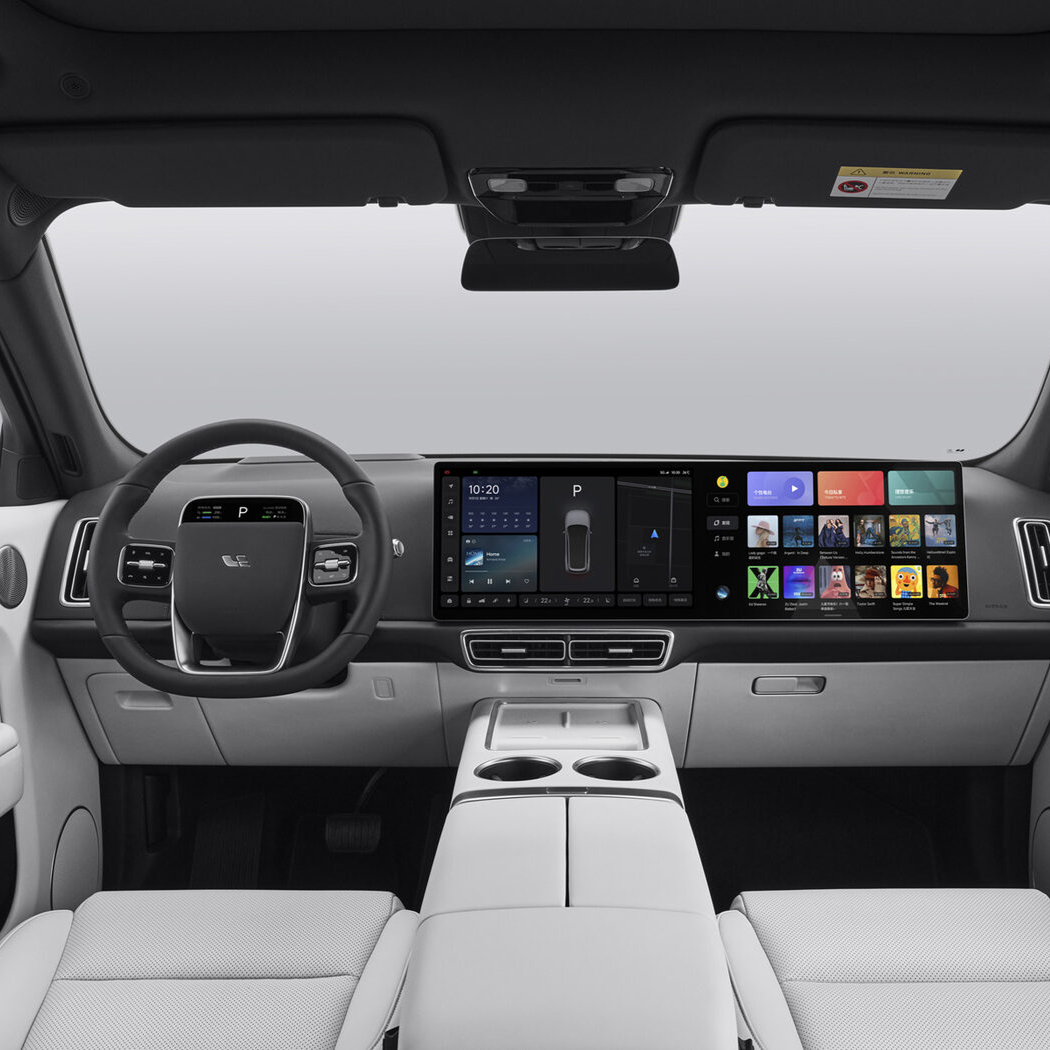 Все экраны имеют антибликовое покрытие и фильтр синего света для защиты глаз. Управление мультимедиа доступно как через сенсорный экран, так и через голосовые команды (только на китайском языке) или жесты.